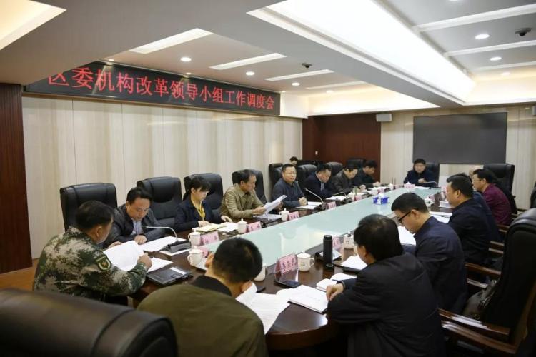 3月28日上午,区委书记陈阁辉主持召开区委机构改革领导小组工作调度会,他强调,机构改革工作已进入关键时期,各有关部门要统一思想认识,严肃纪律要求,贯彻落实中央和省、市有关工作精神,严格按照既定工作方案,对标对表逐一落实,确保限时完成深改工作。区委副书记、区长黄建文,区领导彭端生、朱彦翼、李峰、周岳雄、徐平、白铭科、彭飞等参加会议。