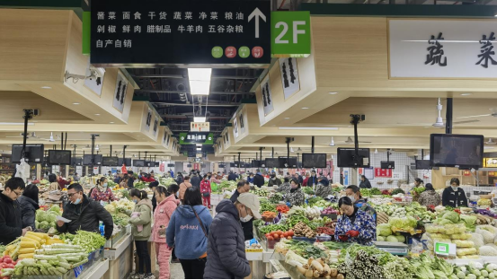 近日,天还未完全亮,花板桥农贸市场已人流攒动,商户们整齐摆好摊位,鸡鸭鱼肉、蔬菜瓜果等商品一应俱全。秩序井然、干净整洁、安全卫生的购物环境,让每一位前来购物的市民都能感受到文明之风,心中的幸福感也油然而生。
