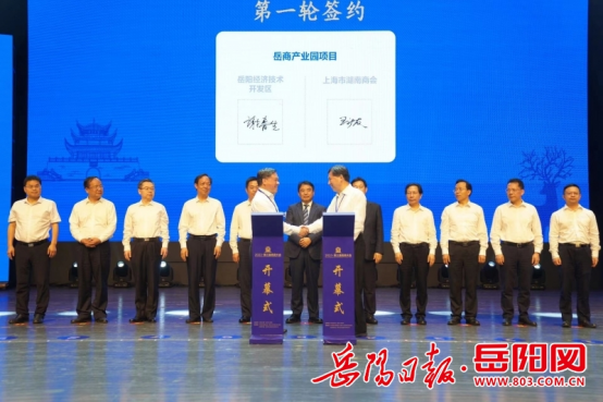 曹普华致辞 李挚主持 汪涛黎作凤等参加 本届岳商大会签约项目21个,投资总额369.2亿元