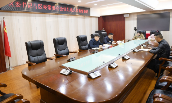 根据党中央关于加强对“一把手”和领导班子监督的意见,以及省委、市委有关文件精神,1月16日,区委书记曾平原采取逐一谈话的形式,与区委常委会组成人员开展监督谈话。区委常委、区纪委书记、区监委主任张扩军参加。