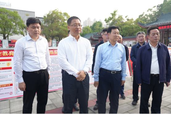在第九个全民国家安全教育日即将到来之际,4月14日下午,省委常委、市委书记、市委国家安全委员会主任谢卫江参观“总体国家安全观·创新引领 10 周年”主题展。他强调,要深入学习贯彻习近平总书记关于总体国家安全观的重要论述以及在湖南考察时的重要讲话和指示精神,全面贯彻总体国家安全观,更好统筹发展和安全,以高水平安全支撑高质量发展。市委副书记、市委国安委副主任李挚,市委副书记、市委政法委书记、市委国安委副主任汪涛参加,区委书记曾平原,区委副书记、区委宣传部长胡晓明,区委常委、区委办主任童六祥陪同。