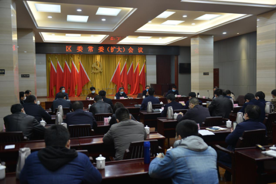 2月13日晚,我区召开区委常委(扩大)会议。副市长黎作凤、市政协副主席秧励,市委副秘书长任小娟、市政府副秘书长廖长生、市委组织部常务副部长张赟等到会督导。区委书记陈阁辉主持会议,区委副书记、区长黄建文,全体在家区委常委会议组成人员及市、区相关单位负责人参加。