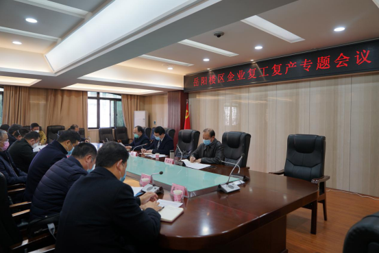 2月16日下午,受区委书记陈阁辉委托,区委副书记游志坚主持召开岳阳楼区企业复工复产专题会议,区政府副区长严石龙及相关部门负责人参加。