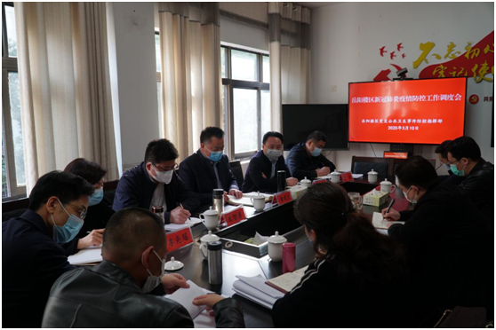 3月10日下午,区委副书记、区长黄建文来到区突发公共卫生事件防控指挥部,就新冠肺炎疫情防控和复工复产工作开展调度。区领导徐平、王智勇、罗海、李尧瑶,以及相关单位负责人参加。