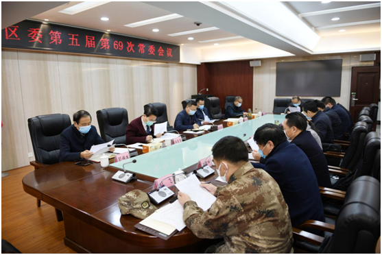 3月11日上午,区委书记陈阁辉主持召开区委第五届第69次常委会议。会议传达学习了3月4日习近平总书记在中共中央政治局常务委员会上的重要讲话精神、3月6日习近平总书记在决战决胜脱贫攻坚座谈会上的重要讲话精神和中共中央办公厅、国务院办公厅印发《关于构建现代环境治理体系的指导意见》文件精神,以及市委书记王一鸥在全市决战脱贫攻坚决胜全面小康市县乡负责干部大会上的讲话精神,听取了2019年度区委区政府综合绩效考评情况汇报,研究审议了评先评优及综治相关考评工作结果,并原则通过《岳阳楼区决战脱贫攻坚决胜全面小康党政负责干部大会方案(送审稿)》《岳阳楼区全面小康决胜年行动方案(送审稿)》《五届区纪委五次全会工作报告(送审稿)》《五届区纪委五次全会会务方案(送审稿)》。全体在家的区委常委会议组成人员参加会议。