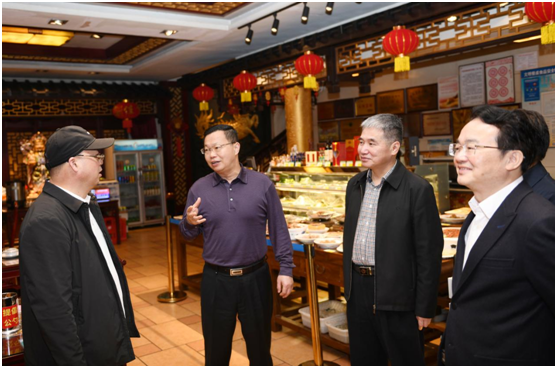 随着我区疫情防控成效的巩固提升,按照有关要求,我区餐饮门店在落实防疫举措的情况下,已有序开放堂食。岳阳楼街道汴河街周边餐饮门店,在实行了登记、测温后方可有序入店,店内采取错位用餐,并加强食品安全管理,做到食材新鲜、安全、健康。陈阁辉在详细听取了餐饮机构在复工以来的经营情况后表示,我区作为“三产强区”,餐饮行业等现代服务业受疫情冲击影响较大,各有关部门要按照有关要求,通过加大宣传力度、带头引导消费等实际举动,支持餐饮企业渡过难关,带动全社会恢复市场消费信心,加速推动相关商贸领域的复工复产,促进全区经济稳定运行,市场复苏回暖。