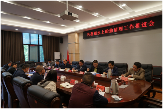 4月14日上午,我区召开芭蕉湖水上船舶清理工作推进会,区委副书记、区长黄建文,区领导余昕、严石龙参加会议。