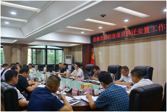 会议组织学习市政府关于蛋禽市场旧改项目的相关会议纪要精神,听取项目前段工作推进情况,就征拆政策、征拆模式、征拆概算、经济技术指标、宗地出让进行研究会商,并对后段工作提出明确要求。