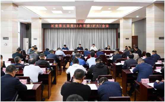 3月14日下午,区委书记曾平原主持召开区委第五届第92次常委(扩大)会议。传达学习习近平总书记在党史学习教育动员大会上的重要讲话精神,各级宣传部长会议精神,全市违法建设集中整治行动工作推进会议、全市强化基层治理和事权属地管理动员部署会议以及组织部长会议精神,研究部署接转市直部门事权下放工作,听取我区开展党史学习教育以及电信网络新型违法犯罪、禁毒工作情况汇报。全体在家区委常委会议组成人员参加。
