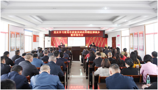 4月28日下午,党史学习教育市委宣讲团岳阳楼区郭镇乡宣讲报告会举行。市委宣讲团成员,市委常委、宣传部长马娜作宣讲报告,区委书记曾平原主持报告会,区委常委、宣传部长王智勇以及近百名基层党员干部参加。