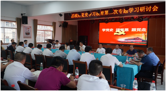 在吕仙亭社区,白再兴主持召开区政府党史学习教育第二次专题学习研讨会。会上,全体参会人员集体研读了《习近平新时代中国特色社会主义思想学习问答》和《习近平总书记考察湖南重要讲话精神辅导读本》的相关篇目。全体副区长及部分与会人员围绕“学史增信”主题,结合学习和工作实际,分享思考体会。