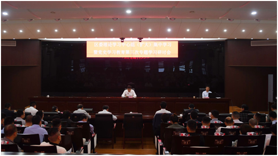 5月26日上午,区委理论学习中心组(扩大)集中学习暨党史学习教育第三次专题学习研讨会举行。区委书记曾平原主持会议,参加现场教学。市委党史学习教育第三巡回指导组副组长李卫强到会指导,湖南理工学院马克思主义学院院长、教授高其荣作辅导报告,全体在家区委理论学习中心组成员参加。