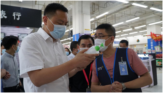 在沃尔玛超市入口,白再兴认真翻阅冷链运输等台账资料,详细了解防疫措施落实情况。在各车站,白再兴要求各部门协同开展工作,进一步强化国内中高风险地区来岳人员的排查、筛查。每到一处,白再兴都认真听取近期疫情防控工作开展情况,询问当前存在的困难和需求,并慰问奋战在一线防疫工作者,叮嘱他们在做好疫情防控工作的同时,注意加强自身防护,注意劳逸结合,确保安全有序地开展防疫工作。