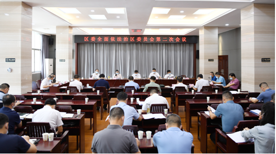 8月17日上午,区委书记、区委全面依法治区委员会主任曾平原主持召开区委全面依法治区委员会第二次会议。区委副书记、区长、区委全面依法治区委员会副主任白再兴,区委副书记、区委全面依法治区委员会副主任胡晓明及全体在家区委常委会议组成人员,有关区级领导及相关区直部门、街道(乡)负责人参加会议。