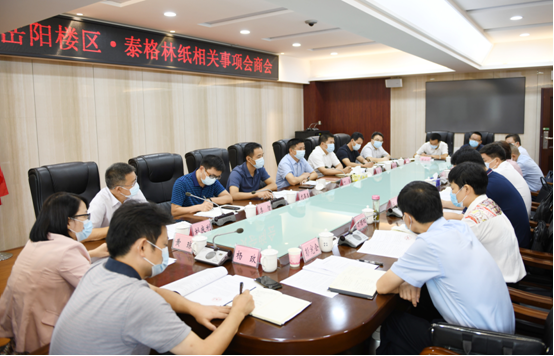 8月18日上午,岳阳楼区与泰格林纸召开会商会,就“三供一业”移交等相关工作事项进行会商研究,区委书记曾平原主持会议,区领导亓磊、李尧瑶、方腊初及相关单位负责人参加。