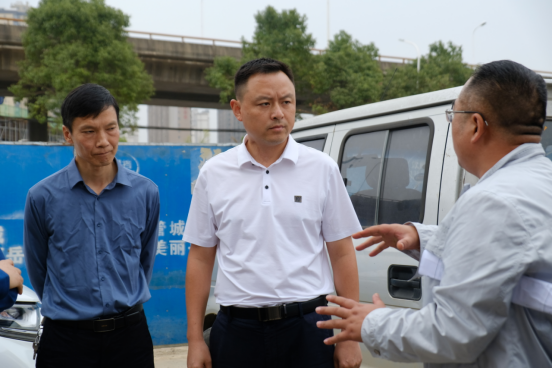 白再兴一行先后深入三码头、中粮码头、七里山沿线、北门渡口、韩家湾大堤等地,实地察看项目建设进度,详细了解建设工期、项目规划等情况,并与项目相关负责人深入交流,研究解决项目建设中的实际问题。