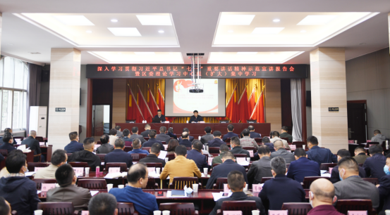 10月22日下午,区委书记曾平原主持召开区委理论学习中心组(扩大)集中学习会议,深入学习贯彻习近平总书记“七一”重要讲话精神、《中国共产党机构编制工作条例》及全市县市区纪(工)委书记座谈会精神。市委统战部副部长、市委党史学习教育第三巡回指导组组长周泽柱到会指导,区委理论学习中心组全体成员参加。