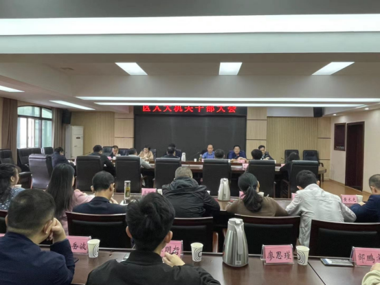 11月1日上午,区人大召开新一届领导班子见面会。区人大常委会党组书记、主任周岳雄主持会议,副主任严石龙、李尧瑶、吴珂、李亚东、李熊出席。区人大常委会机关全体干部参加会议。