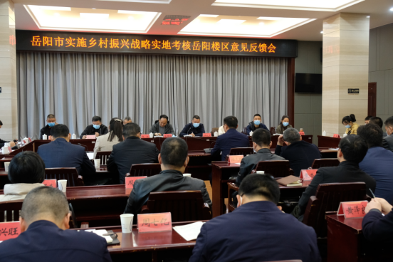 近日,岳阳市实施乡村振兴战略考核组来到我区,实地考核乡村振兴战略实施工作,并于11月24日下午召开意见反馈会,就考核结果进行反馈。市乡村振兴局党组成员、副局长张国辉,汨罗市人大常委会副主任、考核组组长吴纪卫,区委副书记、区长白再兴,区委副书记、区委办主任胡晓明,副区长张哲君出席会议。