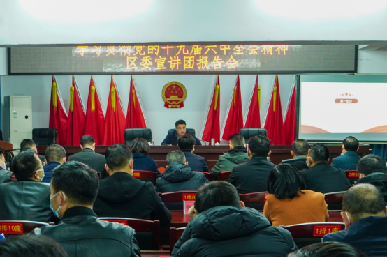 12月15日上午,学习贯彻党的十九届六中全会精神区委宣讲团报告会在枫桥湖街道办事处举行,区委常委、宣传部长、党的十九届六中全会精神区委宣讲团团长罗海以《奋进新征程 谱写新篇章 全力打造核心引领区和首善之区》为题进行宣讲。