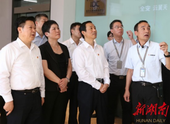 (许达哲考察东江湖大数据中心,了解大数据产业发展情况。)