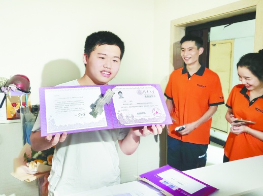 7月15日下午,长沙市长郡中学考生王昕收到了清华大学录取通知书。孟姣燕 摄