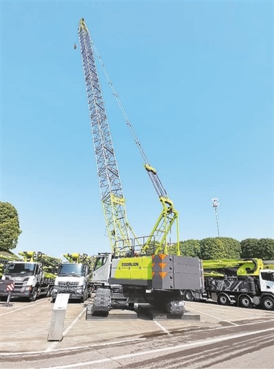 图为中联重科麓谷工业园内供客户参观的一台履带式起重机成品。王俊岭摄