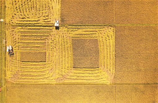 5月9日上午,湖南杂交水稻研究中心海南省三亚市海棠湾基地,收割机对水稻试验示范田进行收割。湖南日报·新湖南客户端首席记者 郭立亮 摄
