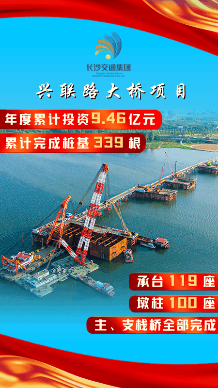 长沙交通集团湘行建设公司建设的兴联路大桥项目是长沙“十大基础设施项目”之一,是目前长沙桥面最宽、单跨最大、桥长最长的过江大桥,项目总投资38亿元,建成后将进一步完善长沙城北区域路网结构,有效缓解过江交通压力,最大限度发挥长益复线高速公路对城市的交通集散功能。
