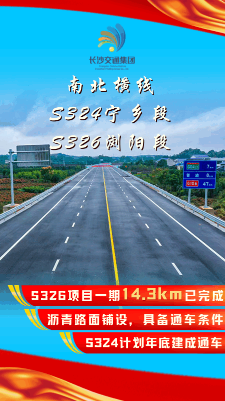 我们投资的又一重大交通基础建设项目——南北横线S324宁乡段、S326浏阳段,计划总投资10.6亿元。其中S326项目一期14.3km已完成沥青路面铺设,具备通车条件,S324计划年底建成通车。该项目是长沙两条东西向交通大通道,建成后将改善长沙东西向路网结构,进一步统筹城乡一体化发展、提升对外辐射能力。