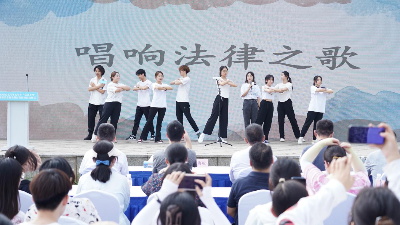大学生志愿者表演《唱响法律之歌》。 人民网 吴茜薇摄