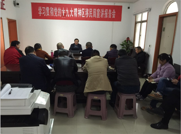 报告会后,易桥勇局长就进一步加强党的十九大精神学习宣传贯彻工作作了安排部署。他强调学习贯彻党的十九大精神,贵在实践、重在落实。要学深悟透,要用十九大精神的高标准来要求自己,结合工作实际,扎实推进移民项目建设、移民培训、信访维稳等各项工作,同时对项目部工作提出二点要求:一是要加强与各部门的协调,切实解决征拆工作中遇到的问题。二是加班加点快速冲刺,要发扬不怕苦的精神,加大签约进度,确保征拆工作如期完成。
