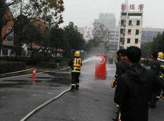 图为微型消防站工作人员技能实操现场。