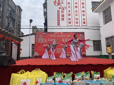 >>>1月24日上午,站前路街道在望城岭社区文化广场举办2019年红红火火迎新春文化活动暨2018年望城岭社区志愿服务工作年度总结表彰大会。