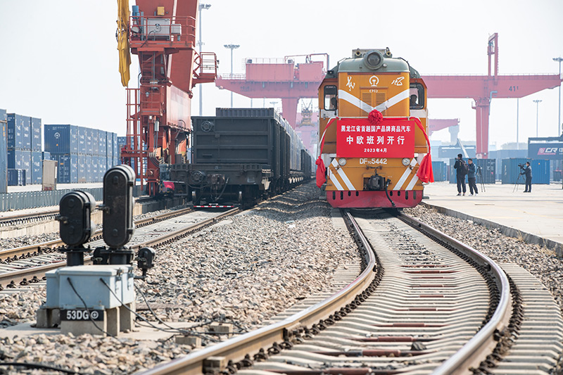 当日,在哈尔滨国际集装箱中心站,黑龙江省开行的首趟国产品牌商品汽车中欧班列发车。该趟班列共载有165台出口的国产品牌商品汽车。
