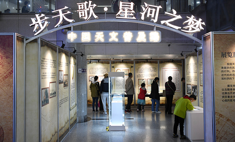 4月22日,小朋友在安徽省合肥市科技馆参观“步天歌·星河之梦”展览,了解航天知识。