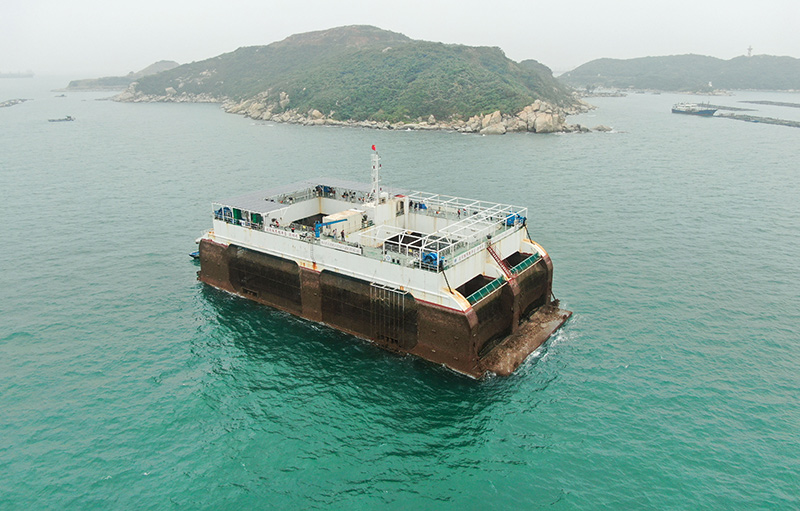 这是在广东珠海万山海域拍摄的中国首台半潜式波浪能养殖旅游平台“澎湖号”(4月25日摄,无人机照片)。
