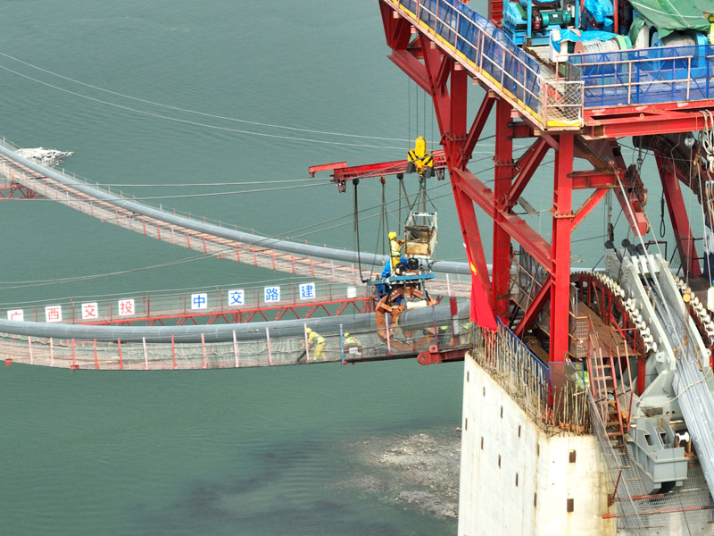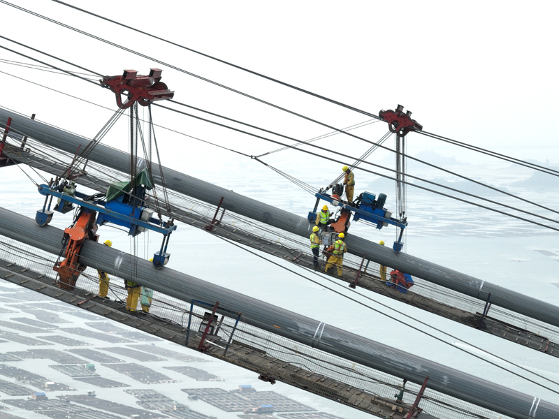 近日,位于钦州市的广西最长跨海大桥——龙门大桥项目建设全面进入上部结构施工阶段,其中龙门大桥主通航孔桥已完成主缆的架设,目前正在进行紧缆施工。