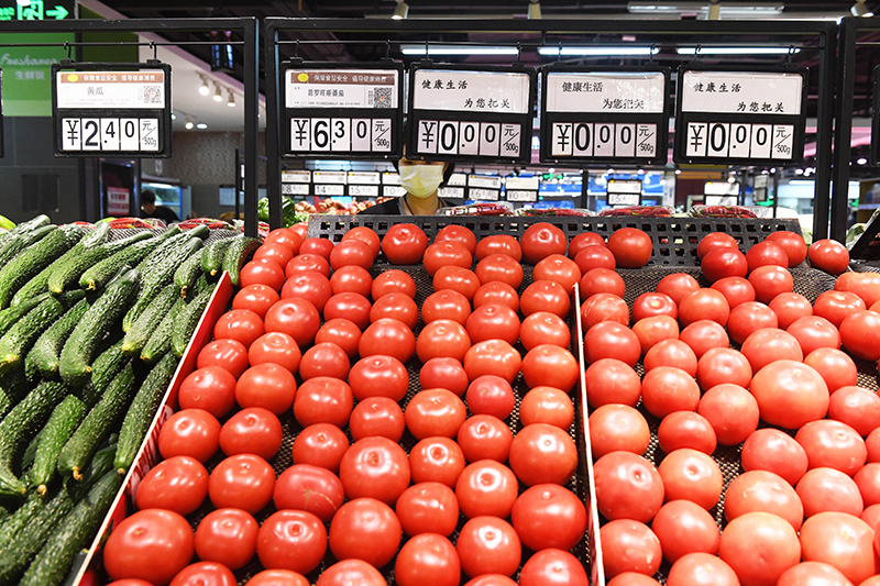 5月11日,消费者在湖南省怀化市通道侗族自治县一家生活超市内选购蔬菜。