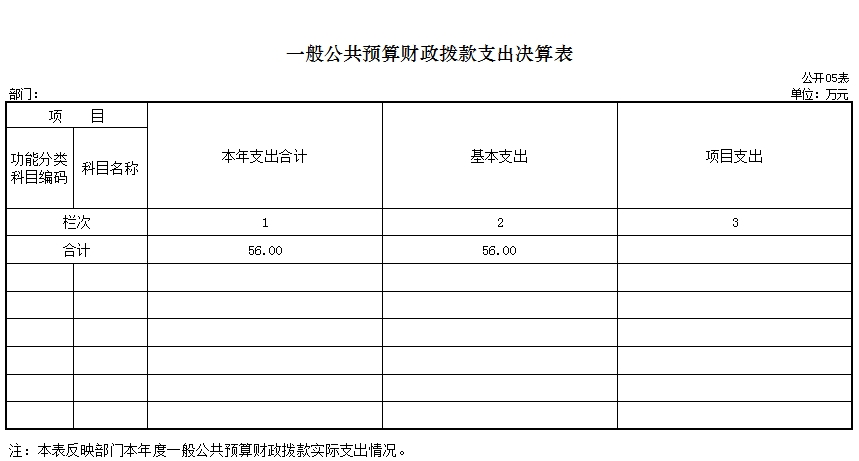2016年全年财政拨款收入58万元,总支出56万元,其中工资福利支出49万元(基本工资35万元,津贴补贴6万元,绩效工资8万元),商品和服务支出7万元(办公费1万元,印刷费5万元,公务接待费1万元)。公务接待费主要是用于接待软件公司系统维护、软件升级等加班用餐开支。