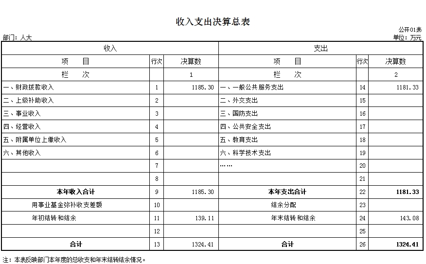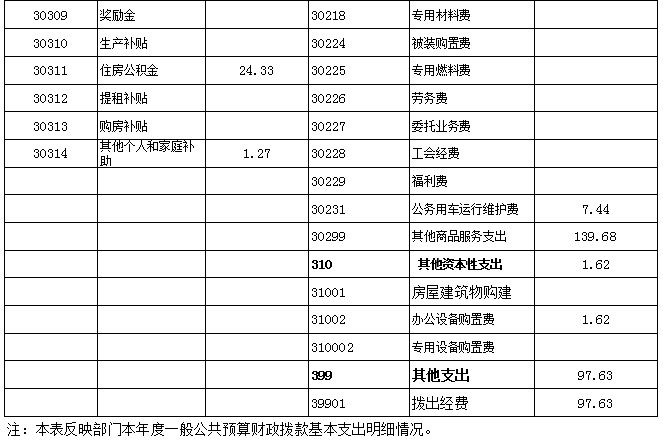 2016年全年预算总收入为639万元,其中工资福利支出拨款291.14万元,一般商品和服务支出46.36万元,对个人和家庭补助支出24.33万元,项目支出278万元。2016年决算总支出为1185.3万元,其中工资福利支出336.01万元,商品和服务支出46.36万元,对个人家庭补助支出24.33万元,项目支出426.3万元。2016年决算支出超出预算546.3万元,主要是在工资福利及项目支出方面,主要原因2016年财政追加新增项目经费及追加人员绩效考核奖励经费等情况。