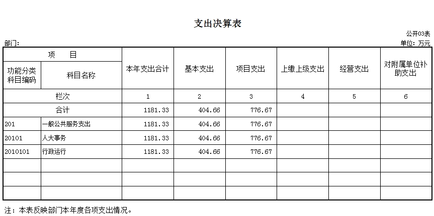 2016年全年总支出为1181.3万元,其中:基本支出406.7万元,占总支出34.4%的,项目支出776.7万元占总支出的65.6%。