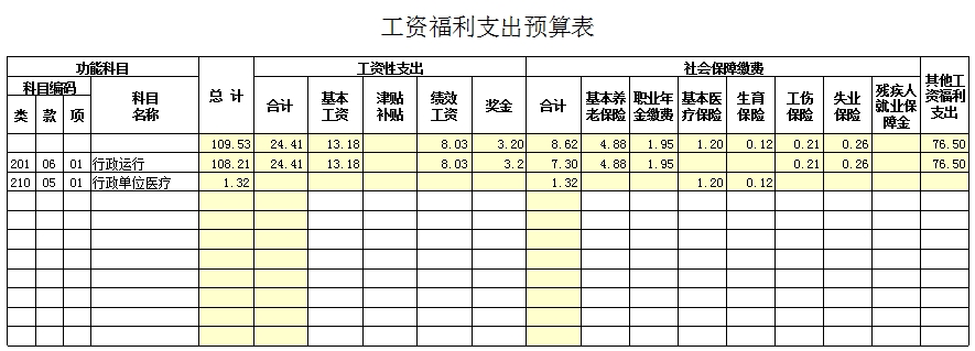 预算总支出126万元,其中:基本支出126万元(工资福利支出109.53万元、一般商品和服务支出 3.46万元、对个人和家庭的补助支出13.01万元)。