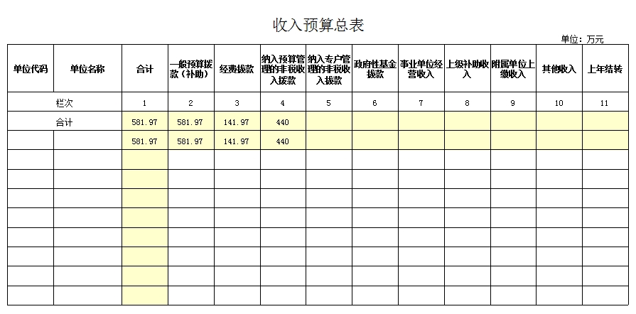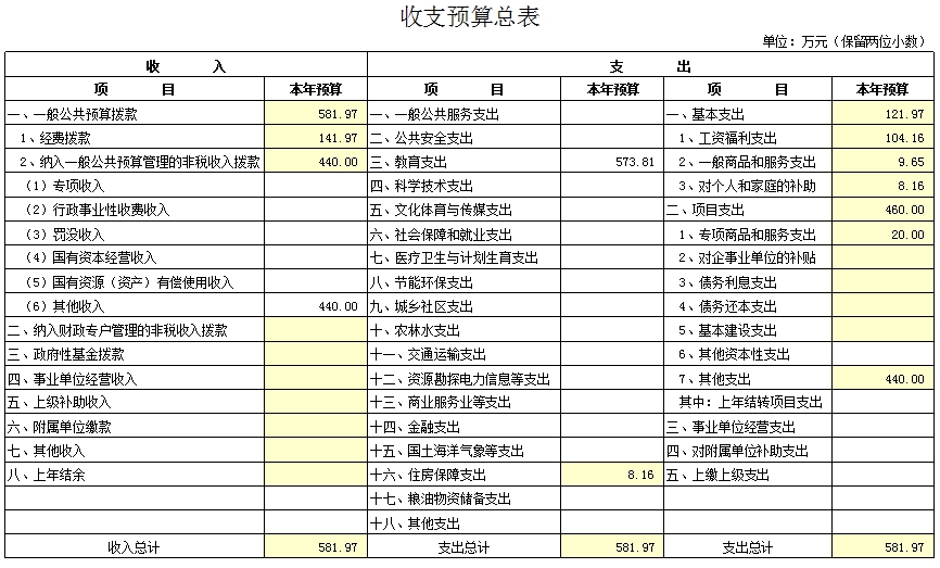预算总收入581.97万元,其中:经费拨款141.97万元;纳入预算管理的非税收入拨款440万元。