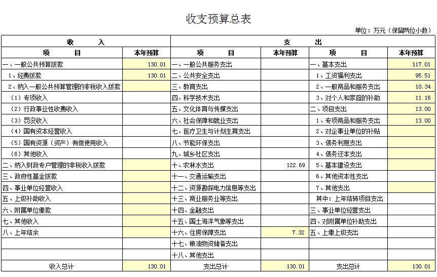 预算总收入130.01万元,其中:经费拨款130.01万元。