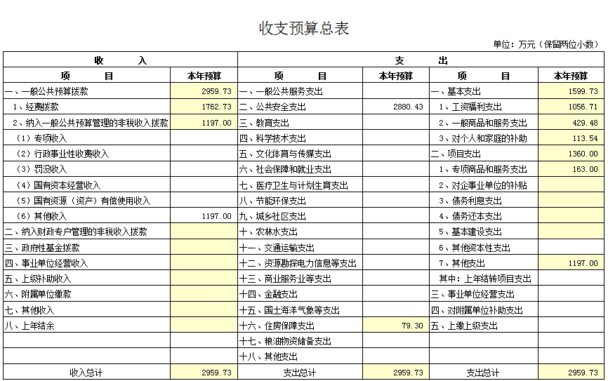 预算总收入2959.73万元,其中:经费拨款1762.73万元;纳入预算管理的非税收入拨款1197万元。