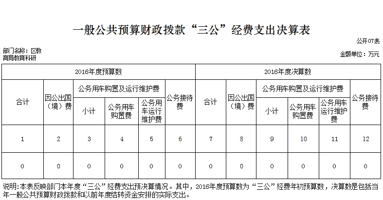 教育科研是楼区教育机关的内设2级机构,所以没有产生“三公”经费。