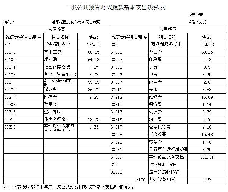 工资福利支出166.52万元。其中:基本工资86.85万元、津补贴64.38万元、社会保障缴7.57万元、其他工资福利支出7.72万元。商品和服务支出68.52万元。其中:办公费7.03万元、印刷费5.38万元、水费0.4万元、电费3.95万元、邮电费2.8万元、差旅费3.83万元、维修费15.69万元、租赁费1.14万元、会议费0.39万元、培训费0.76万元、工会经费7.4万元、其他商品服务支出4.57万元。对个人和家庭的补助53.35万元。其中:退休费36.72万元、医疗费2.35万元、住房公积金12.75万元、其他对个人和家庭的补助支出1.53万元。办公设备购置5.97万元。公务用车运行维护费3.65万元、公务接待费5.18万元。