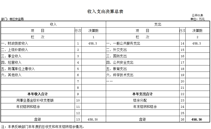 一、收入支出决算总表