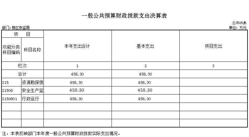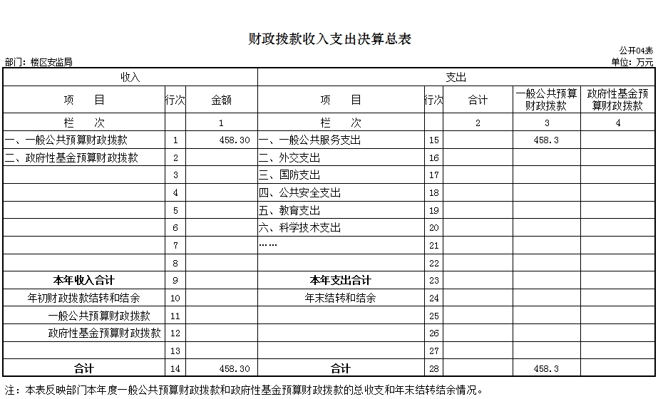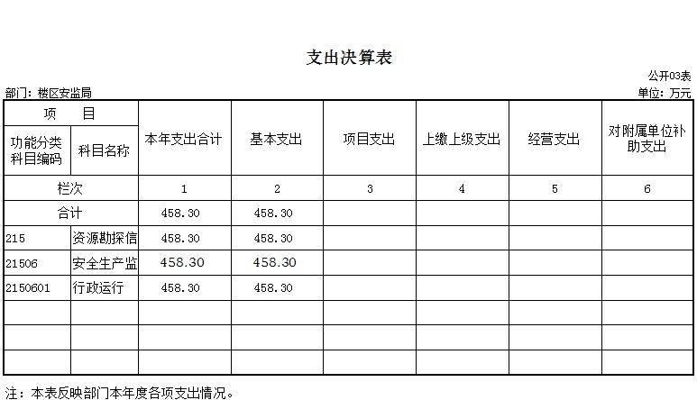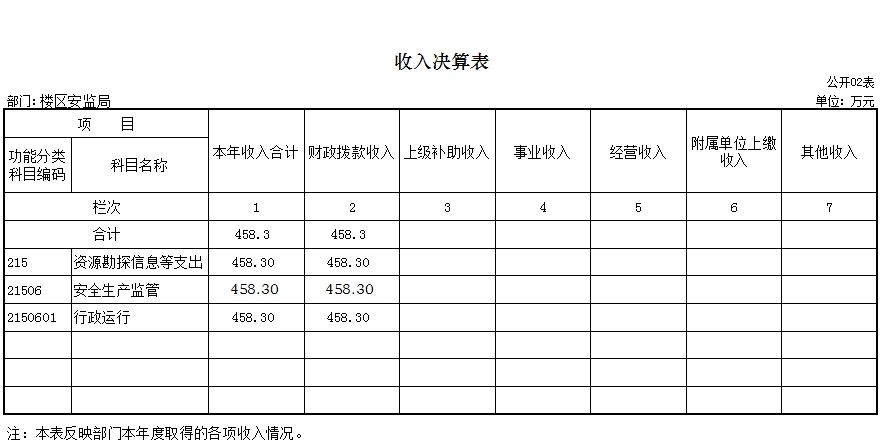 岳阳楼区安监局2016年度收入总计458.3万元,支出总计458.3万元。
